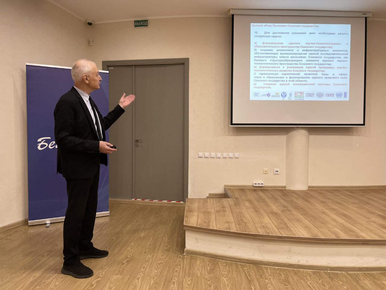 На заседании секции обсуждены ключевые тенденции и перспективы научно-технологического развития Союзного государства, а также стратегические направления сотрудничества между двумя странами.