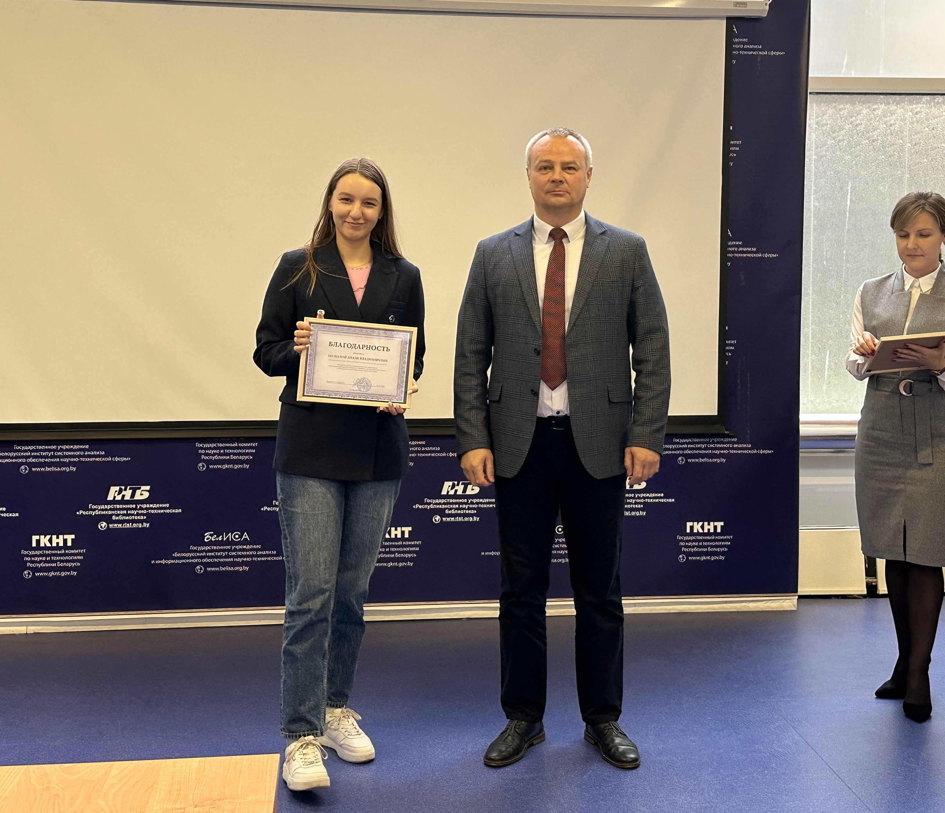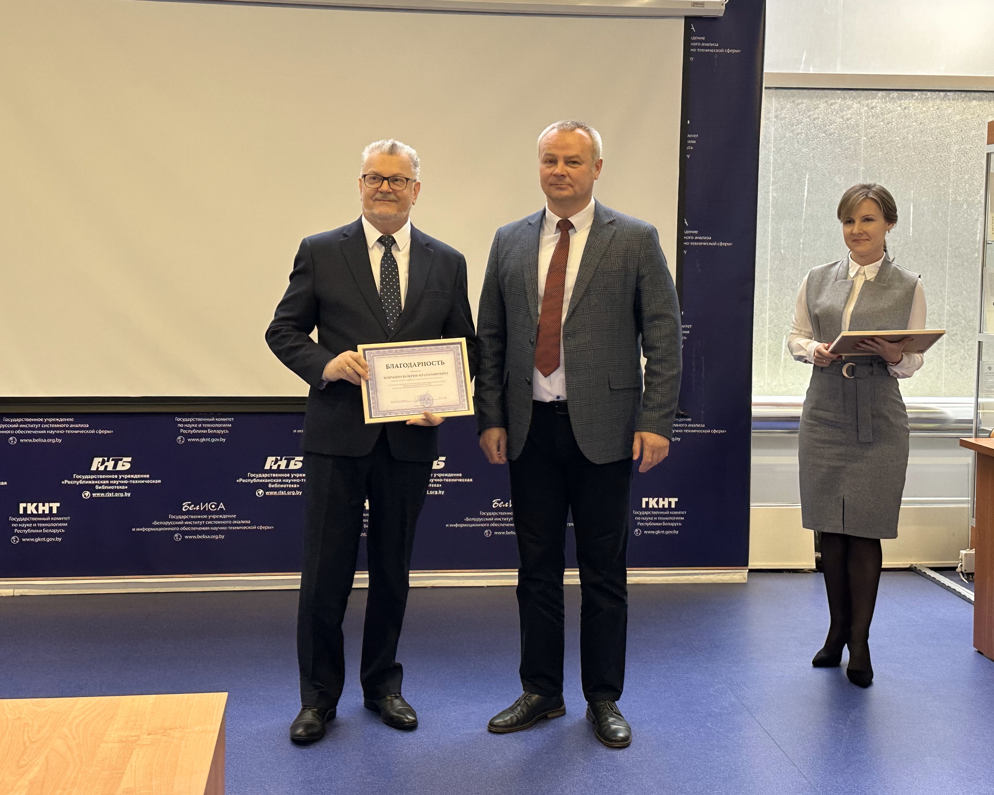 В преддверии праздника в ГУ «БелИСА» прошло торжественное собрание трудового коллектива, на котором сотрудникам структурных подразделений института была объявлена благодарность директора за плодотворную и качественную работу, высокое профессиональное мастерство, инициативный подход к работе, высокий уровень ответственности при выполнении должностных обязанностей.