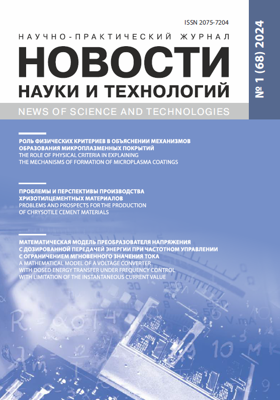 В новом номере журнала «Новости науки и технологий» опубликованы статьи белорусских ученых, посвященные изучению роли физических критериев в объяснении механизмов образования микроплазменных покрытий и созданию математической модели преобразователя напряжения с дозированной передачей энергии при частотном направлении с ограничением мгновенного значения тока. В данном номере также опубликованы результаты работы российских ученых по изучению проблем и перспектив производства хризотилцементных материалов.