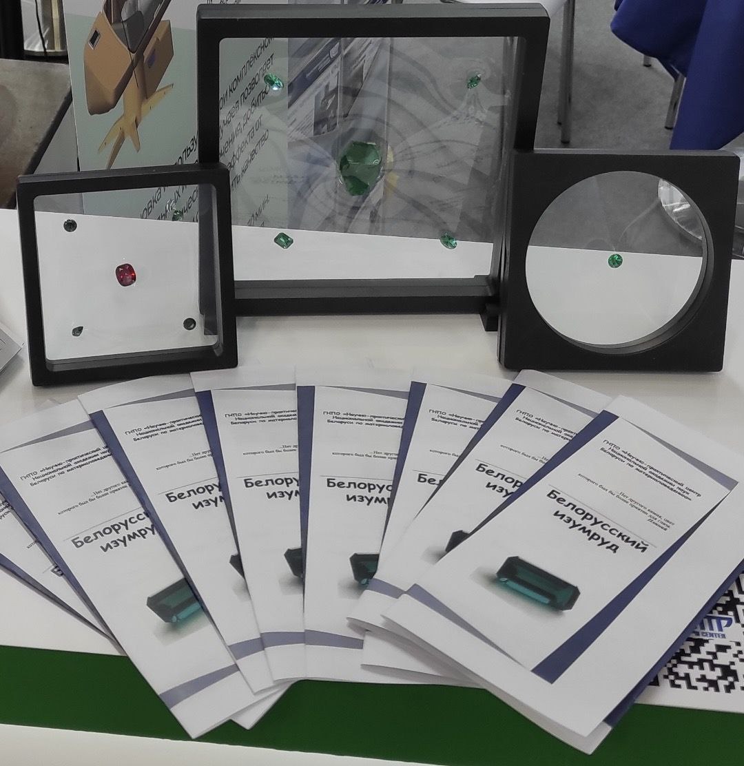 монокристаллы и ограненные ювелирные вставки из искусственно выращенного изумруда. Подобные монокристаллы производятся с морфологическими особенностями, физическими свойствами и характеристиками цвета, максимально приближенными к натуральным драгоценным камням (ГНПО «Научно-практический центр Национальной академии наук Беларуси по материаловедению»);