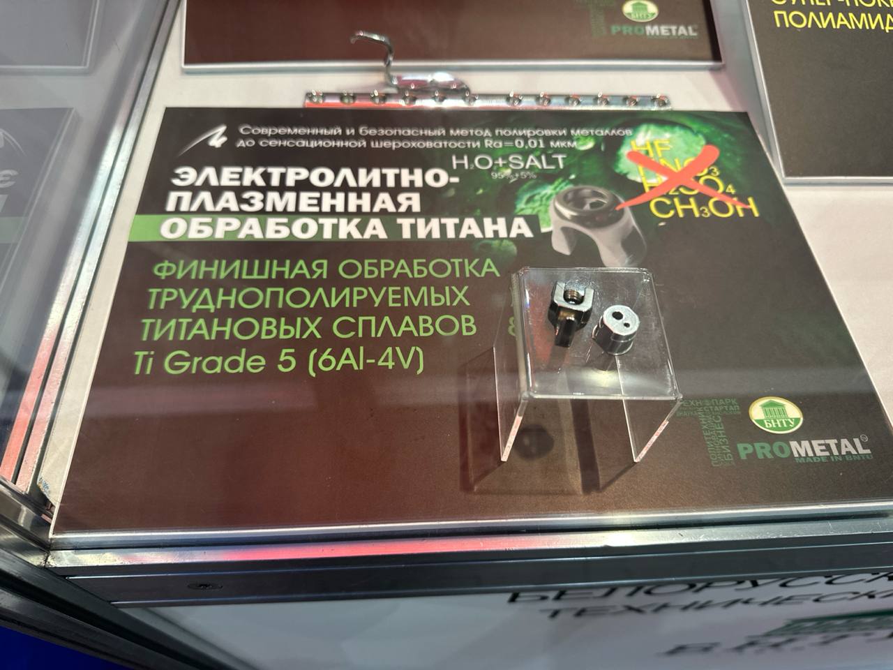 Научно-технологический парк БНТУ «Политехник» презентует электролитно-плазменное полирование изделий из коррозионностойких сталей, нитинола, титана. Предназначено для полирования поверхности изделия до Ra 0,04 мкм; удаления заусенцев и скругления острых кромок, в том числе после лазерной резки; удаления побежалостей, окалины и загрязнений; очистки сварных швов; обезжиривания поверхности и подготовки для нанесения покрытий. Для реализации метода в промышленных масштабах разработаны принципиально новые режимы обработки с применением безопасных электролитов на основе водных растворов солей с общей концентрацией не более 5%.