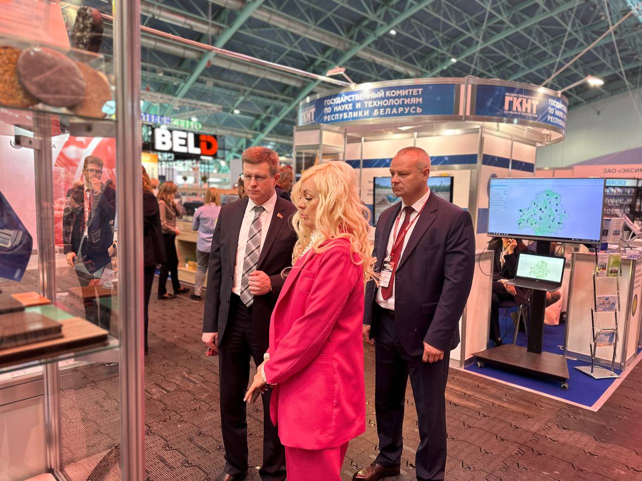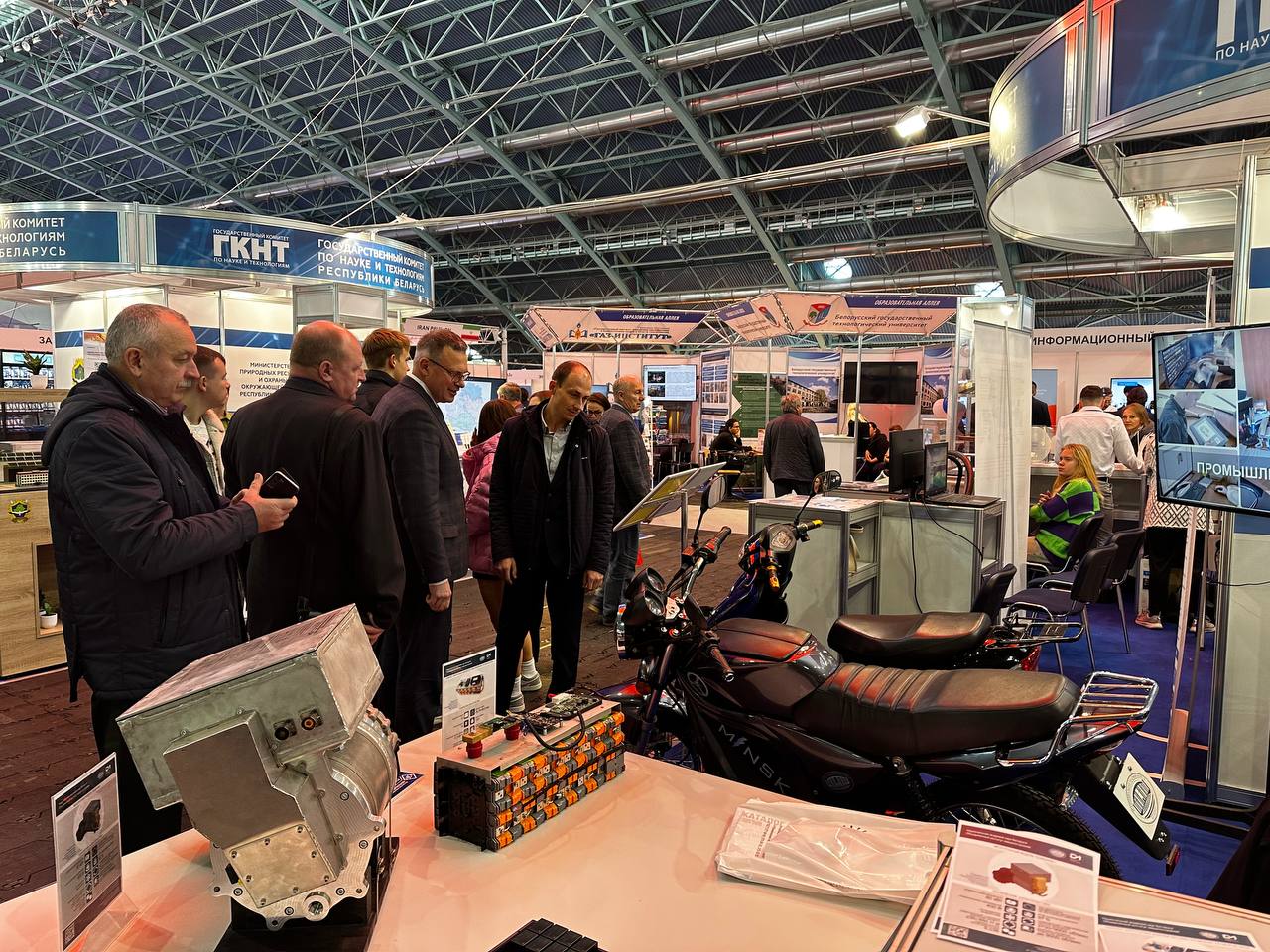Коллективный стенд ГКНТ представлен 77 разработками организаций Министерства образования, Министерства природных ресурсов и охраны окружающей среды, Национальной академии наук Беларуси, технопарков и их резидентов, а также подведомственных организаций ГКНТ. Разработки представлены в виде натурных образцов, макетов, мультимедийных презентаций, видеороликов, брошюр, буклетов и других печатных изданий.