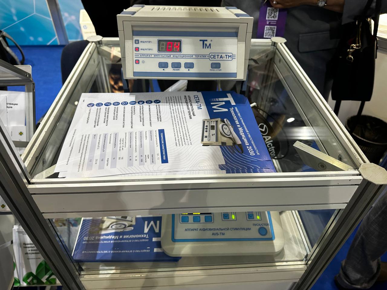 аппарат импульсной индукционной терапии «СЕТА-ТМ», предназначенный для бесконтактного воздействия низко— и среднечастотным импульсным магнитным полем интенсивностью от 0,2 до 1,2 Тесла при заболеваниях и травматических повреждениях периферической и центральной нервной, сердечно-сосудистой, опорно-двигательной, пищеварительной и мочеполовой систем. «СЕТА-ТМ» может применяться в условиях стационара, поликлиники, на дому и в производственных условиях (ООО «ТиМ»);