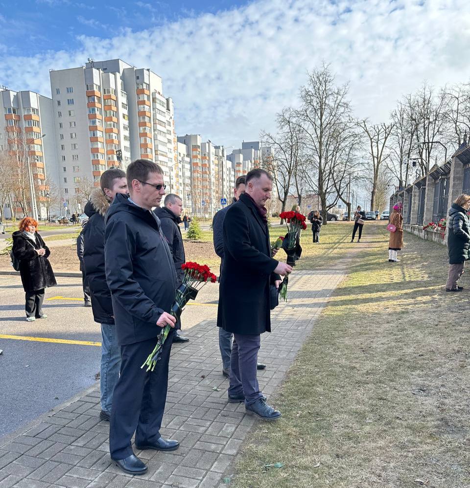 Представители ГКНТ и подведомственных организаций в знак солидарности с российским народом возложили цветы у посольства Российской Федерации в Республике Беларусь, почтив память о погибших в результате теракта в Подмосковье.