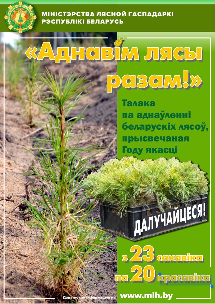 23 марта стартовала республиканская акция «Аднавiм лясы разам!». Ее организатором традиционно выступает Министерство лесного хозяйства Республики Беларусь. Кампания приурочена к Году качества и охватит все регионы страны. Главной целью акции является привлечение внимания общественности к необходимости бережного отношения к лесному фонду. Особый акцент при этом делается на работе с подрастающим поколением.