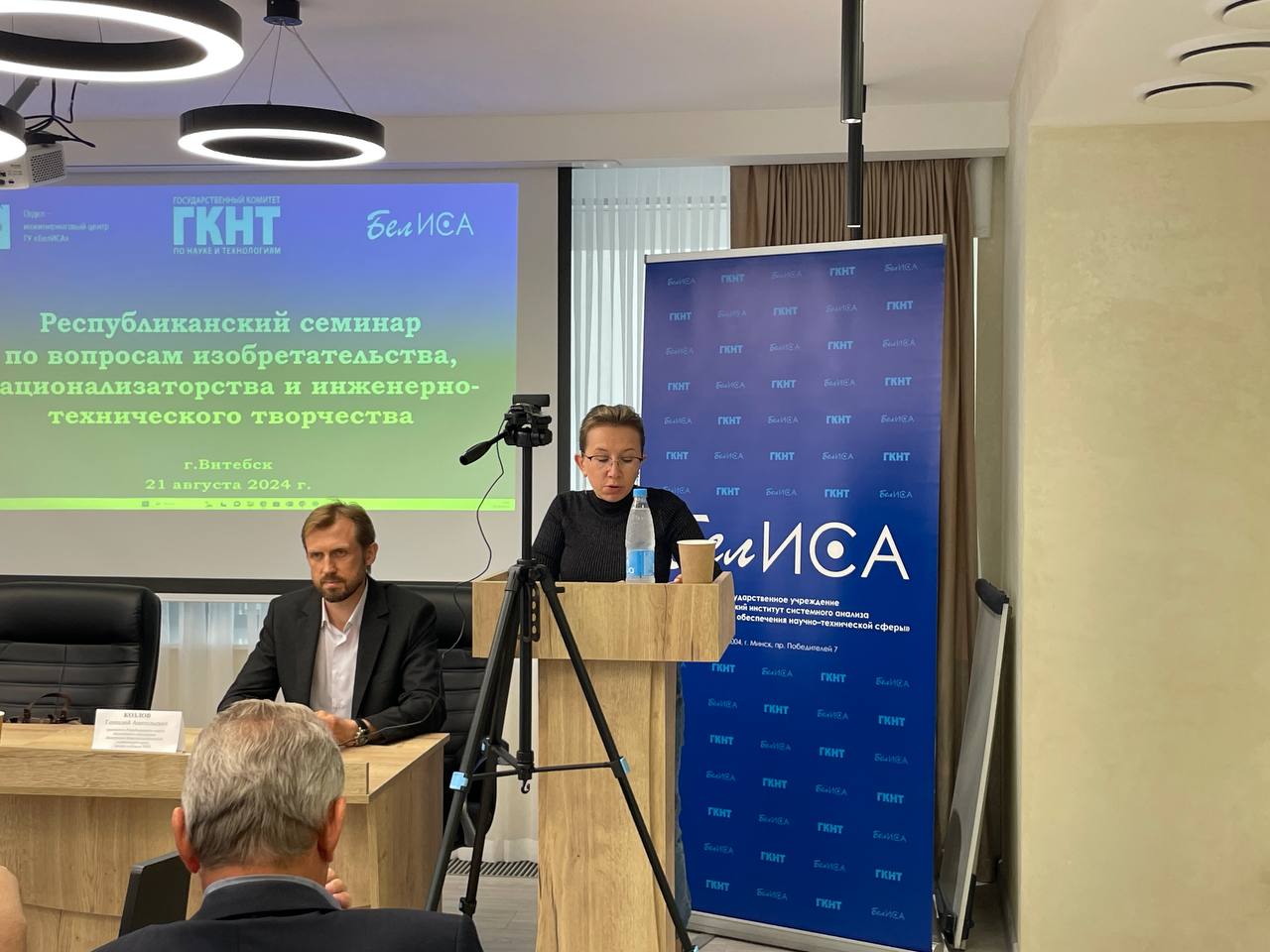 21 августа в Витебске состоялся республиканский семинар по вопросам изобретательства, рационализаторства и инженерно-технического творчества. Организаторами данного мероприятия выступили Государственный комитет по науке и технологиям Республики Беларусь и государственное учреждение «Белорусский институт системного анализа и информационного обеспечения научно-технической сферы».