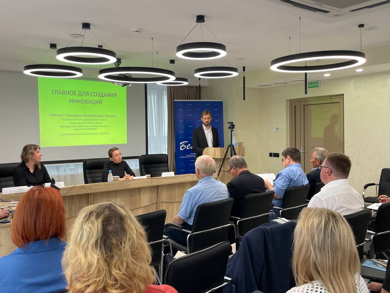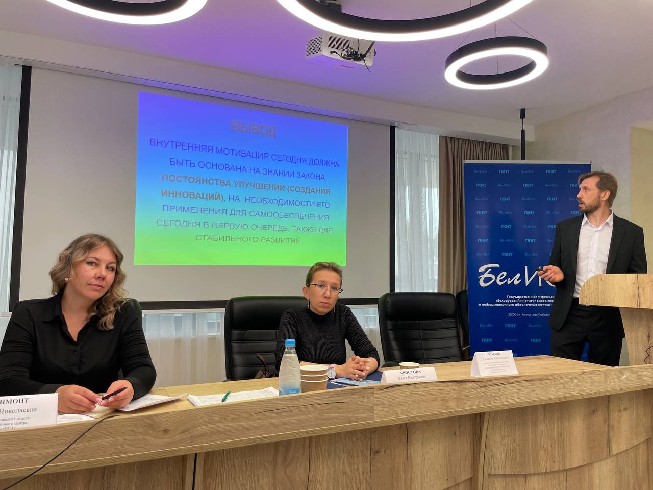 Открыла мероприятие заместитель директора по международной научно-инновационной работе Ольга Хвостова. Она подчеркнула, что в соответствии с Государственной программой инновационного развития Республики Беларусь на 2021-2025 годы для ускоренного развития в республике изобретательства, рационализаторства и инженерно-технического творчества перед государством стоит задача совершенствования работы по обучению и популяризации изобретательства, рационализаторства и инженерно-технического творчества. Одним из механизмов её решения является организация обучающих мероприятий по эффективным методикам инженерно-технического творчества (в том числе по теории решения изобретательских задач), а также формирование знаний, умений, навыков и компетенций в области рационализаторства.
