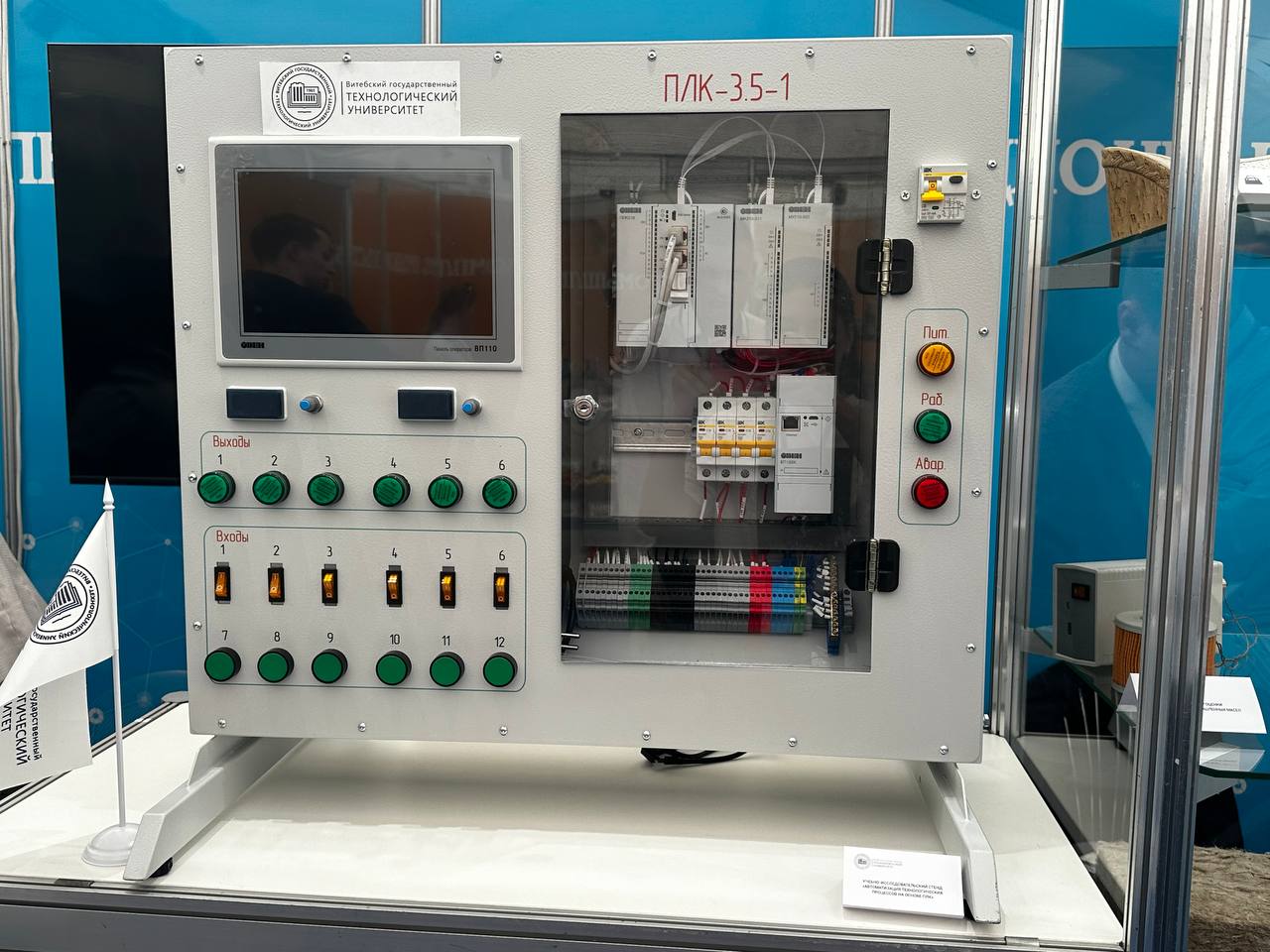 учебно-исследовательский стенд «Автоматизация технологических процессов на основе программируемого логического контроллера (ПЛК)». Разработка позволяет повысить качество подготовки специалистов для наукоемких отраслей промышленности; проводить проектирование, имитационное моделирование и программирование систем, построенных на основе современной приборной автоматики с оборудованием «полевого уровня» (датчиками и сенсорами, рабочими органами), другими системами управления (различных производственных компаний) и системами управления производственным процессами на основе специализированных систем диспетчерского управления типа SCADA (УО «Витебский государственный технологический университет»);