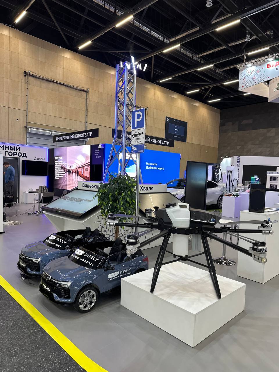 В зоне «точное земледелие» представлен натурный образец агродрона, а в тематической зоне «национальный электротранспорт» расположился электромобиль Geely Galaxy E8, позволяющий наглядно показать эффективный способ движения с использованием экологически безопасных для жителей «умного города» технологий. Рядом с электромобилем экспонируются электрозарядные станции. Национальный транспорт представляет также масштабная модель перронного автобуса MA3 271, который предназначен для перевозки пассажиров в аэропортах.
