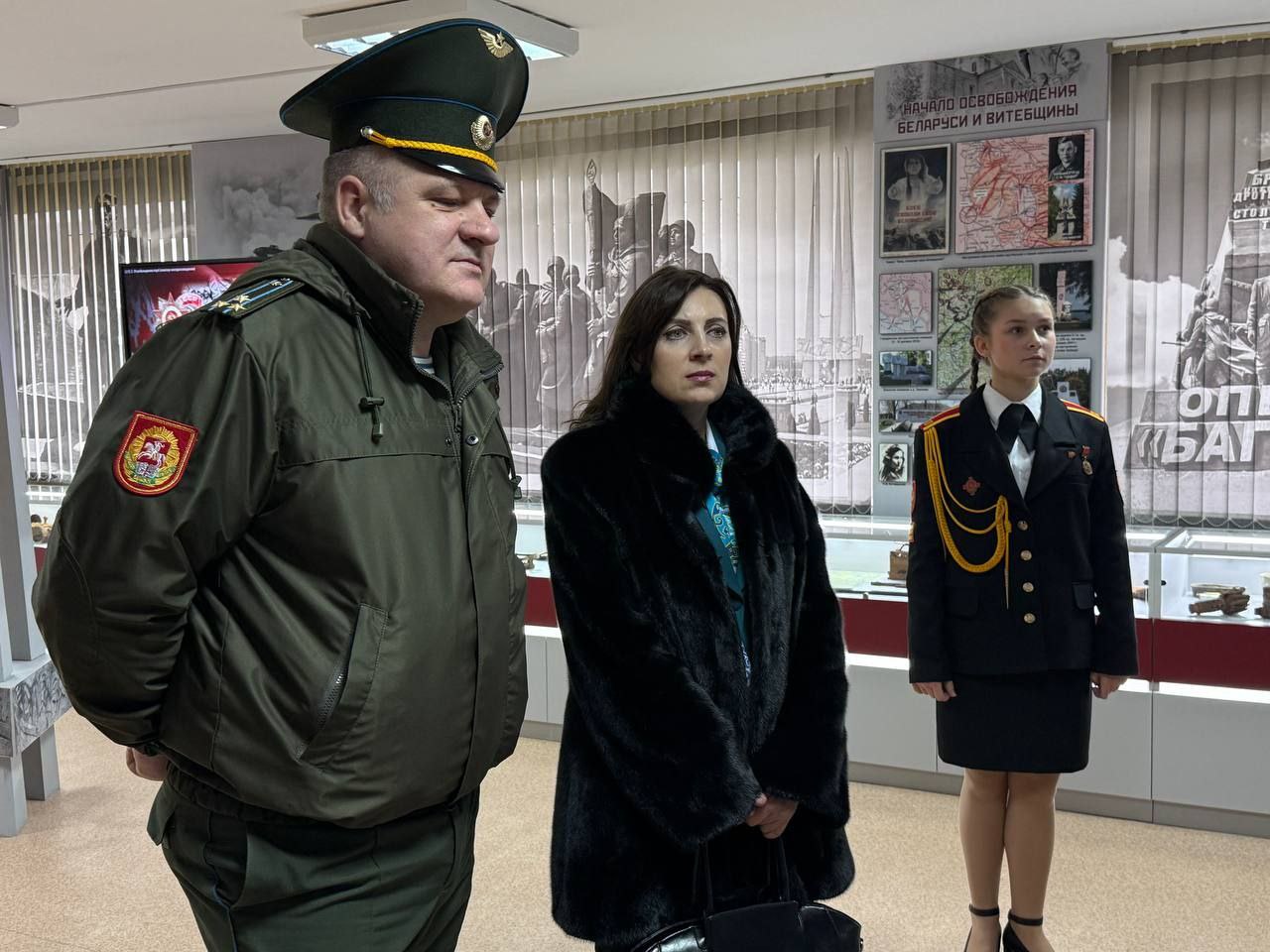 Встреча началась с экскурсии по училищу, также гости посетили стационарную музейную экспозицию «Великая Отечественная война 1941-1945 гг. в истории Беларуси и моего края».