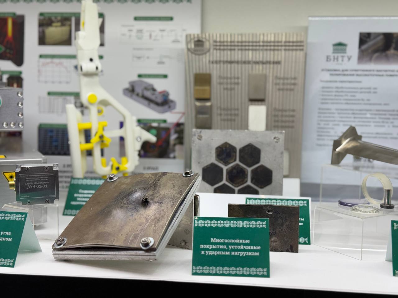 многослойные покрытия, устойчивые к ударным нагрузкам, которые изготавливаются путем нанесения последовательно друг на друга по особой технологии разнородных слоев с различными характеристиками по вязкости, прочности, твердости и проч. Данная технология позволяет создать материалы, применяемые для изготовления облегченных бронежелетов, щитов, взрывозащищённых контейнеров для перемещения потенциально опасных грузов без применения зарубежных компонентов (Белорусский национальный технический университет);