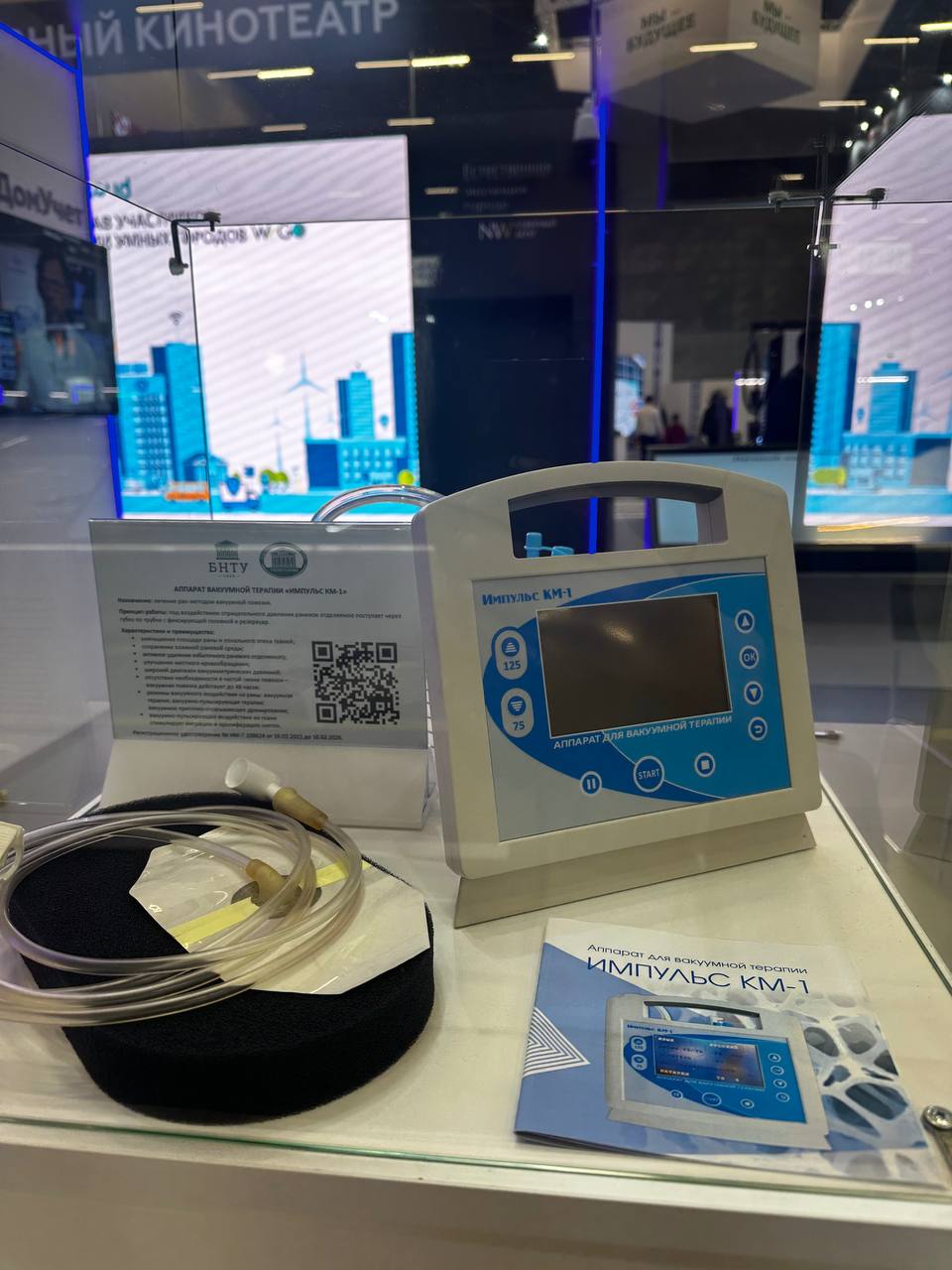 На выставке достижений «Моя Беларусь» в зоне инновационного здравоохранения кластера «Умный город» представлены разработки резидентов научно-технологических парков: аппарат вакуумной терапии (ОДО «ТахатАкси» — резидент научно-технологического парка БНТУ «Политехник»); мобильное приложение «Е-рецепт» (ООО «СтромХелс» — резидент ООО «ИнКата Продакт Девелопмент»), а также программно-аппаратный комплекс «ОСМОТР Плюс» (ООО «БелСофт Осмотр» — резидент Научно-технологического парка Гродненского государственного университета имени Янки Купалы).