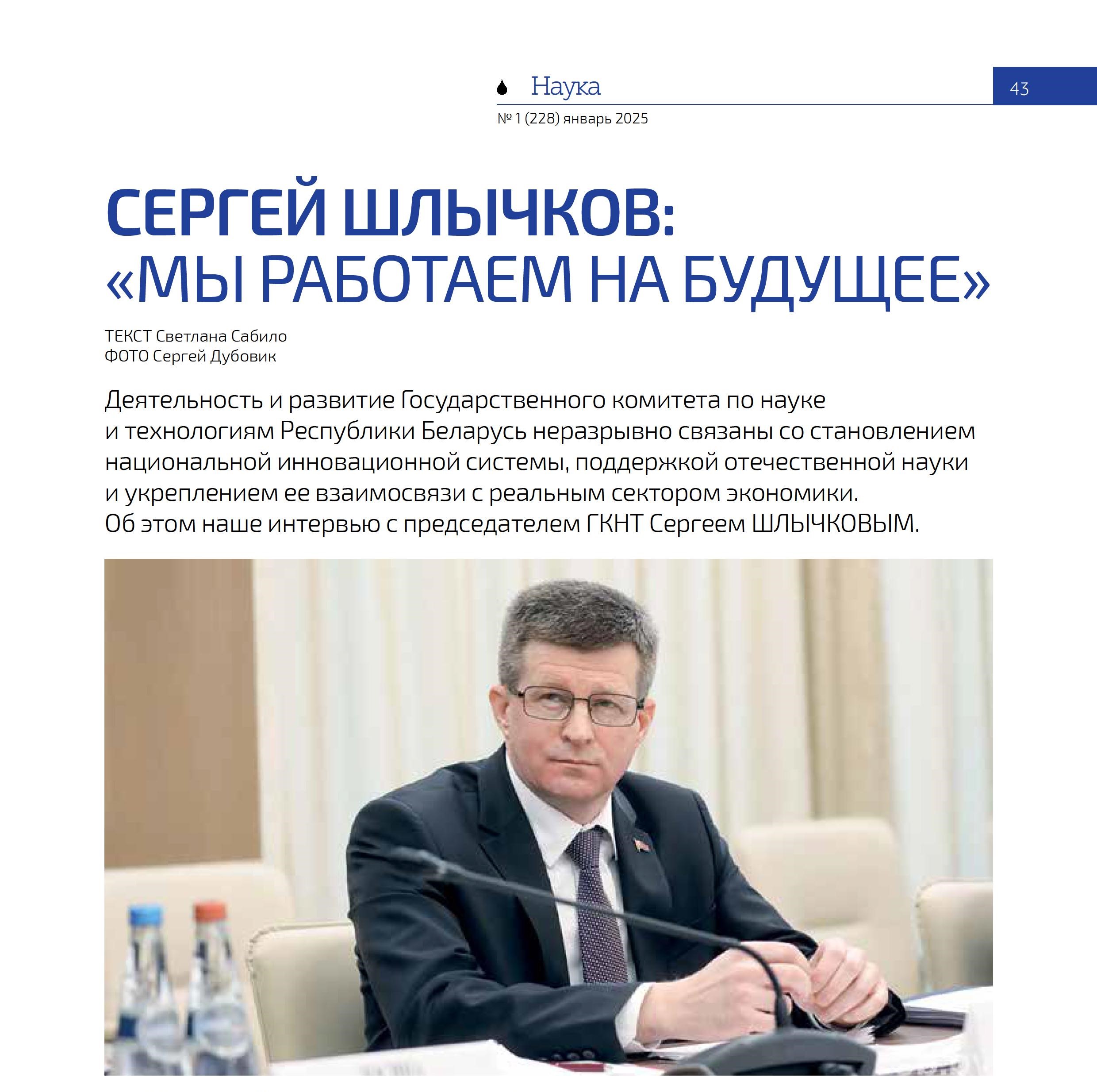 «Мы работаем на будущее»: интервью Председателя ГКНТ Сергея Шлычкова журналу «Вестник Белнефтехима»