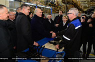 Глава государства поинтересовался, каким образом на предприятии реализуется политика импортозамещения. Как было отмечено, к производству подключены и другие предприятия системы Министерства промышленности, а также частные компании. Одни выпускают сиденья, другие — амортизаторы и так далее. По отдельным моделям уровень локализации достигает 80%.