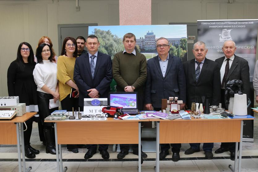Для гостей было организовано знакомство с основными направлениями научно-технической деятельности университета с посещением лабораторий и производственных участков. В мраморном зале развернулась выставка разработок студентов и преподавателей вуза, многие из которых нашли применение на предприятиях Гомельской области.