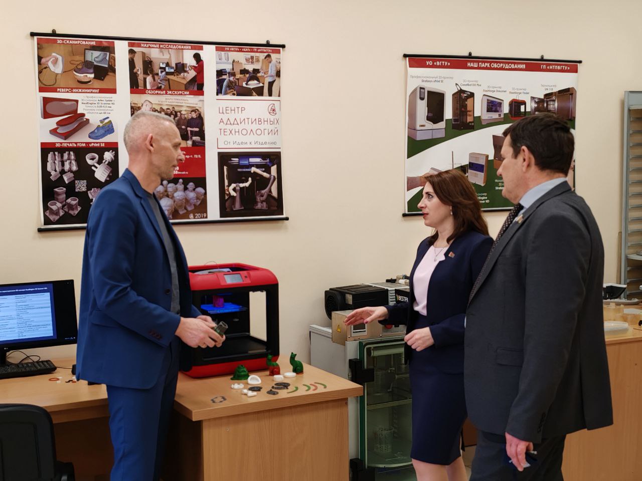 Представители ГКНТ также посетили Центр аддитивных технологий технопарка ВГТУ. Здесь оказывают услуги инжиниринга, реинжиниринга, 3D-печати (включая мелкосерийное производство изделий из полимеров), а также проводят обучение в сфере аддитивных технологий. Центр успешно сотрудничает как с небольшими организациями, так и с крупными предприятиями Витебского региона.