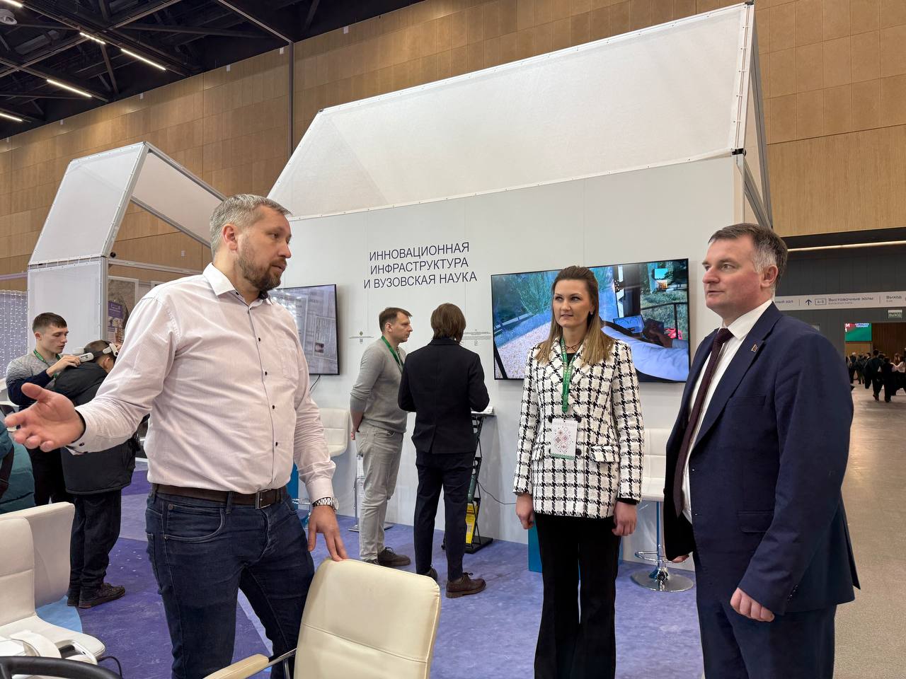 23 января в Минском международном выставочном центре состоялось республиканское собрание научной общественности, посвященное Дню белорусской науки. В рамках праздничного события были организованы профильные тематические секции. Председатель ГКНТ Денис Коржицкий в ходе участия в мероприятиях, приуроченных ко Дню белорусской науки, также ознакомился с разработками, представленными учреждениями Министерства образования Республики Беларусь, резидентами технопарков и Парка высоких технологий в рамках экспозиции «Наука и инновации» на выставке достижений суверенной Беларуси «Моя Беларусь». Коллективный раздел ГКНТ расположен в тематическом блоке «Инновационная инфраструктура и вузовская наука».