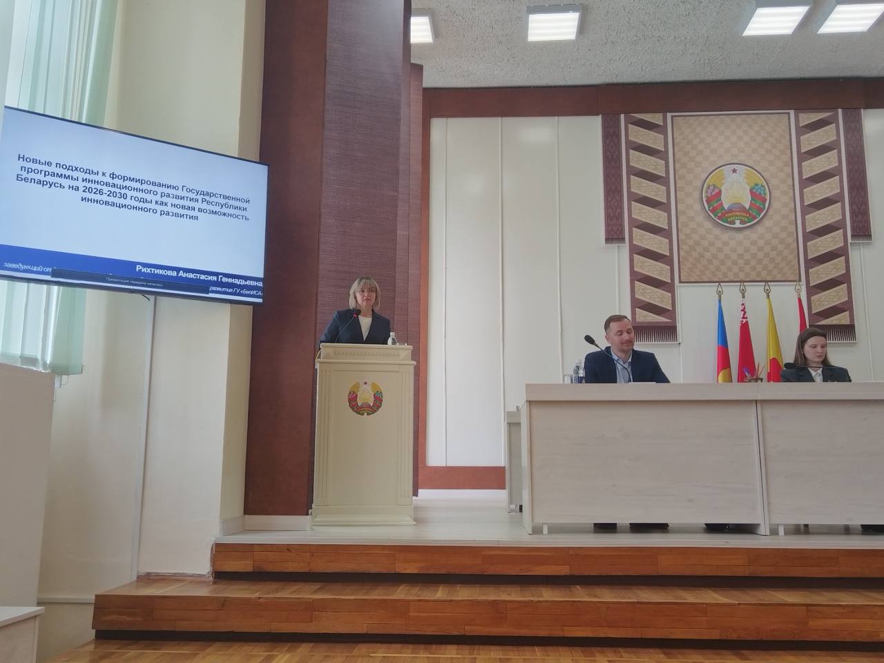 О новациях Государственной программы инновационного развития на 2026 – 2030 годы как новой возможности  реализации инновационных проектов на всех этапах инновационного цикла для всех категорий субъектов инновационной деятельности отразила в своем докладе заведующий отделом научно-методического обеспечения инновационного развития ГУ «БелИСА» Рихтикова Анастасия Геннадьевна.