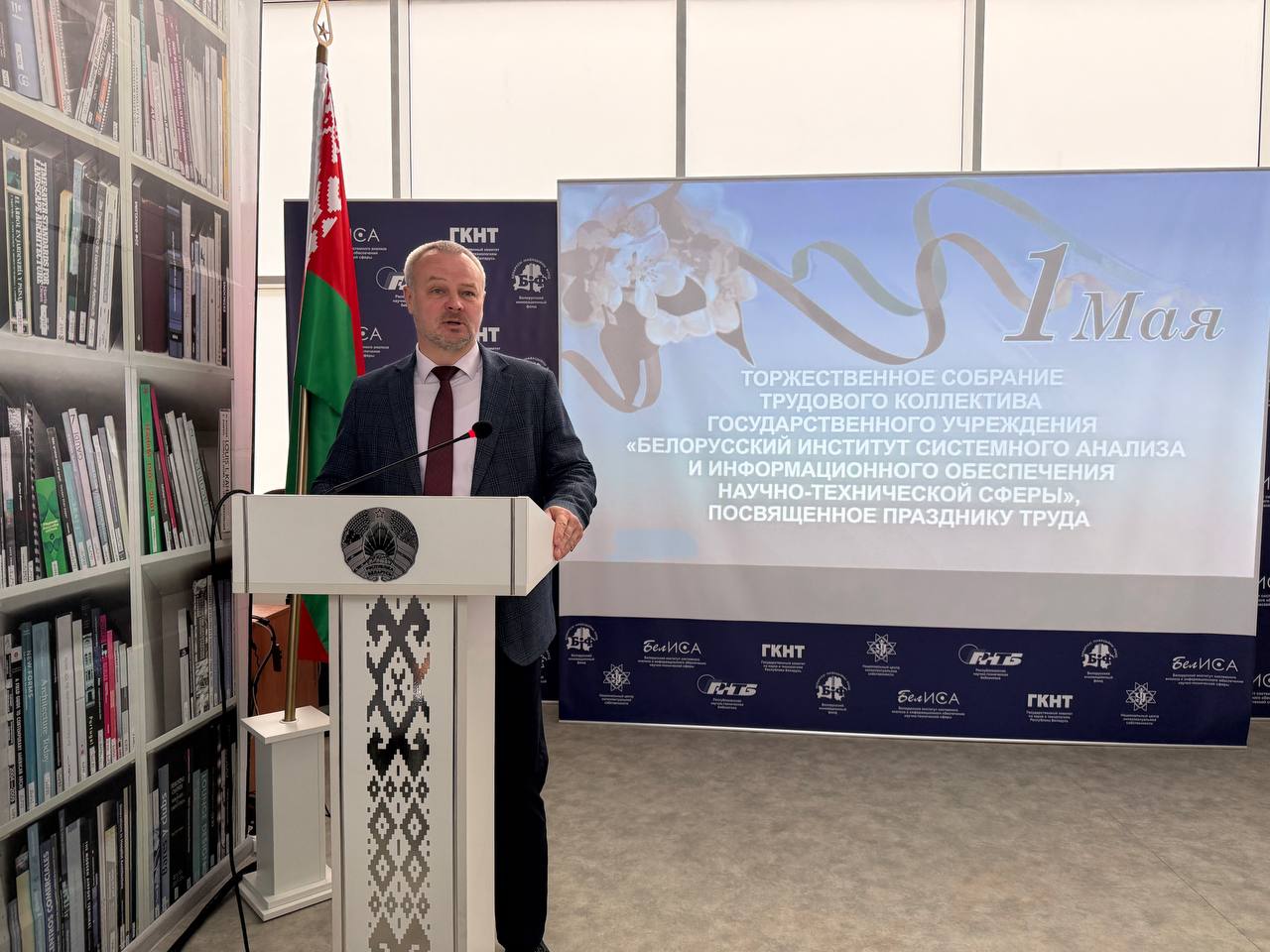 В ГУ «БелИСА» прошло торжественное собрание трудового коллектива, приуроченное празднику труда. Директор института Владимир Суша выступил с приветственным словом и кратким напоминанием об истории праздника.